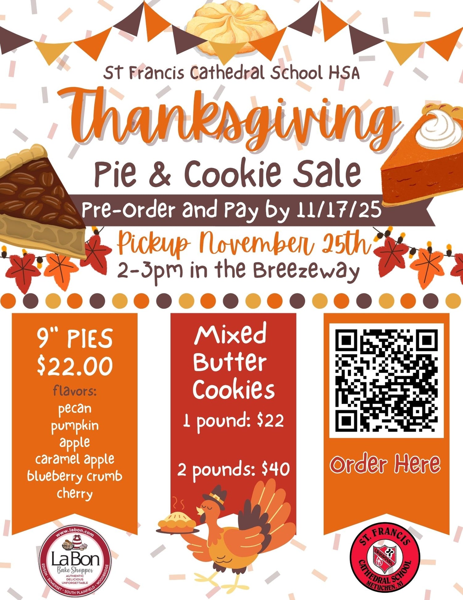 Enjoy delicious, fresh-baked pies and cookies from LaBon Bake Shoppes while supporting our school community. Perfect for your holiday table — or as a sweet gift for family and friends!