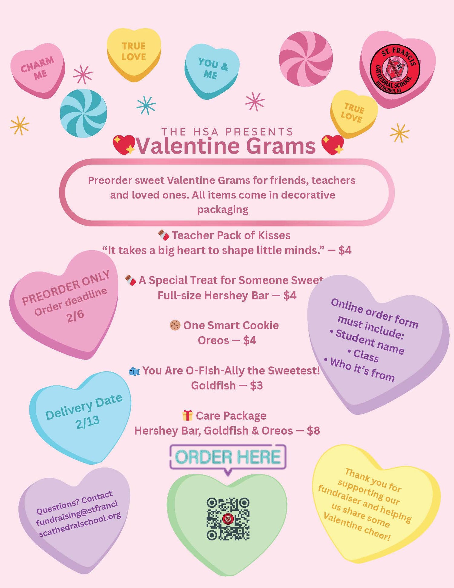 Send a sweet surprise this Valentine’s Day! Preorder Valentine Grams for friends and teachers, delivered to students on February 13.